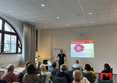 Den Auftakt der Veranstaltungsreihe bildete am Dienstag, 23. September, der Vortrag „Demenz Plus“ von Pflege-Coach Marlen Mirschel, die Grundlagen der Erkrankung, verschiedene Demenzformen und Ursachen anschaulich erklärte. Am Mittwoch, 24. September, folgte Kristian D. C. Collera von der Vitanas Akademie mit „Brücken bauen – Demenz verstehen“. Er zeigte praxisnah, wie Angehörige und Fachkräfte Betroffene einfühlsam begleiten können. Am Donnerstag, 25. September, rundete erneut Marlen Mirschel die Vortragsreihe ab und vermittelte weiteres Basiswissen sowie hilfreiche Tipps für den Alltag.